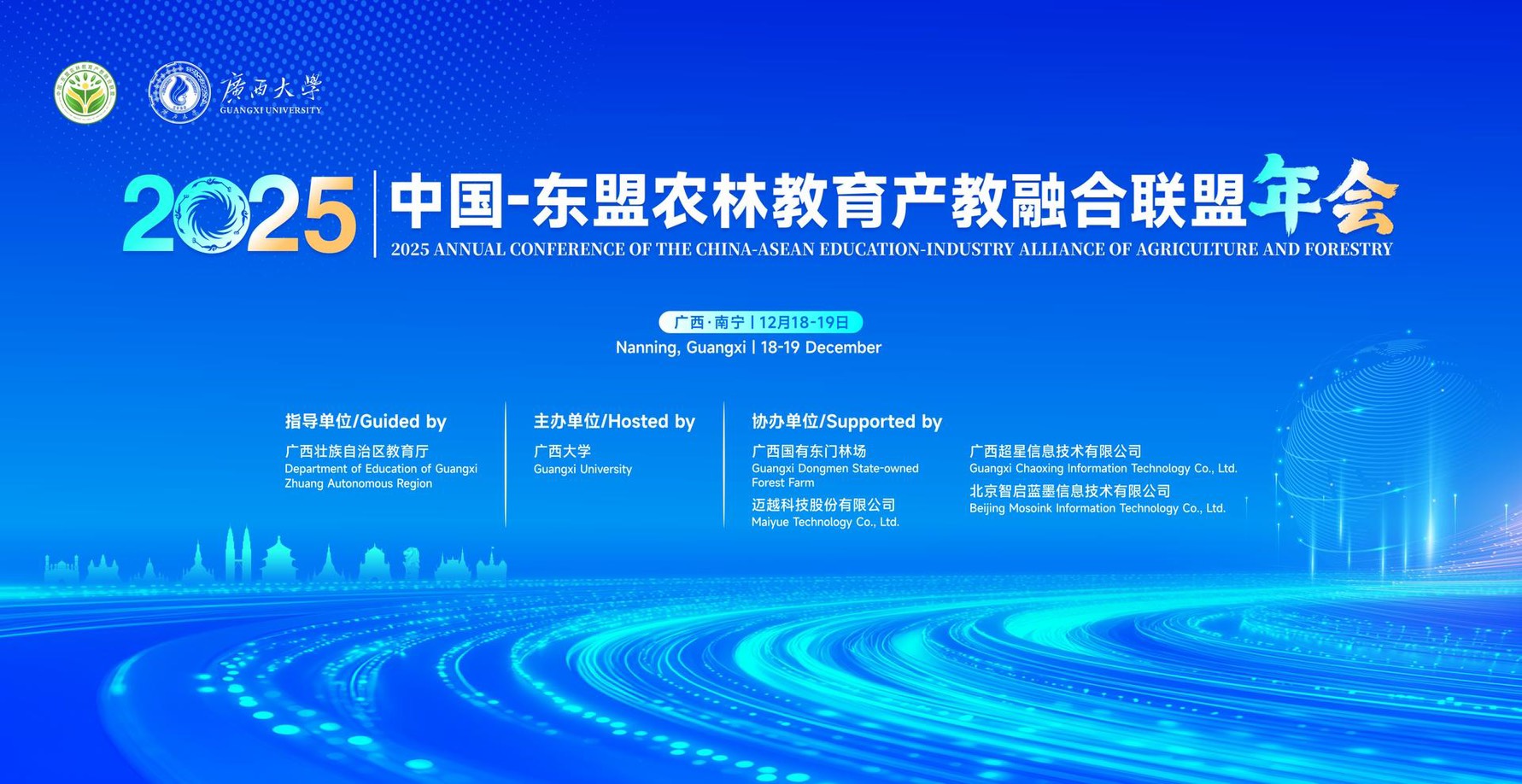 The conference was organized under the guidance of the Department of Education of Guangxi Zhuang Autonomous Region and hosted by Guangxi University, bringing together representatives from higher education institutions, research institutes, government agencies, and industry partners from China and ASEAN countries.