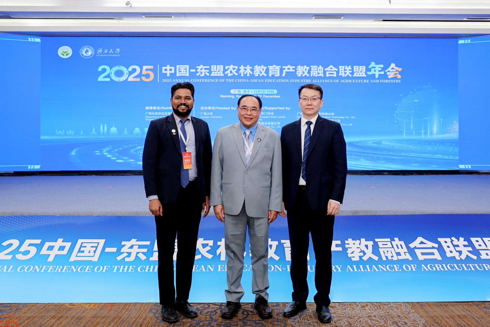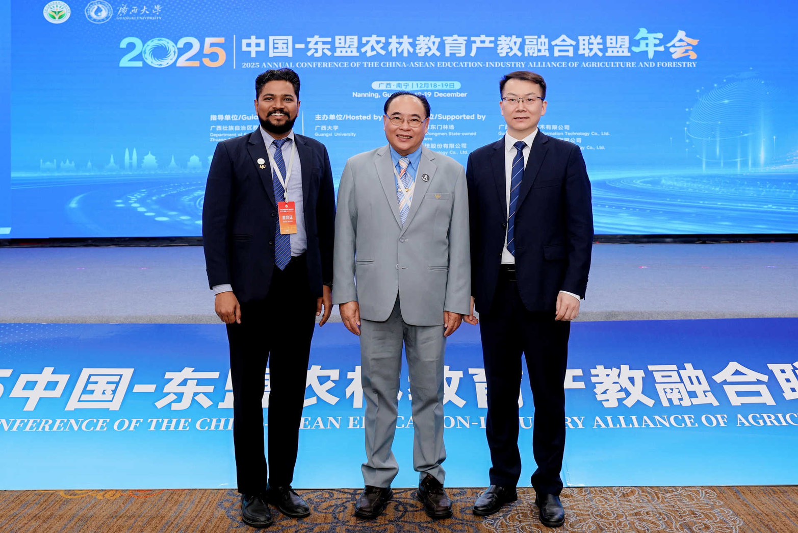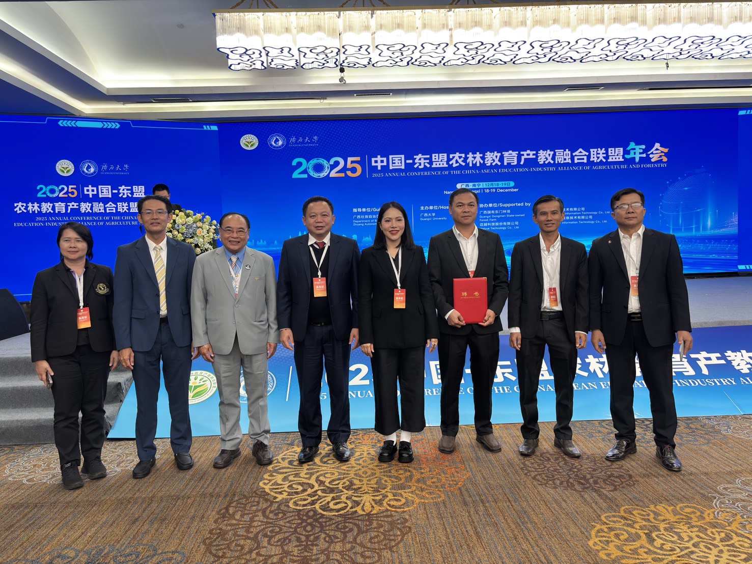 On this occasion, Associate Professor Dr. Weerapon Thongma, President of Maejo University, along with Dr. Prakash Murgeppa Bhuyar, Assistant Dean on International College Maejo University participated in the 2025 Annual Conference of the China–ASEAN Agriculture and Forestry Education–Industry Integration Alliance, held on 18–19 December 2025 at the Wharton International Hotel, Nanning, Guangxi Zhuang Autonomous Region, People’s Republic of China.