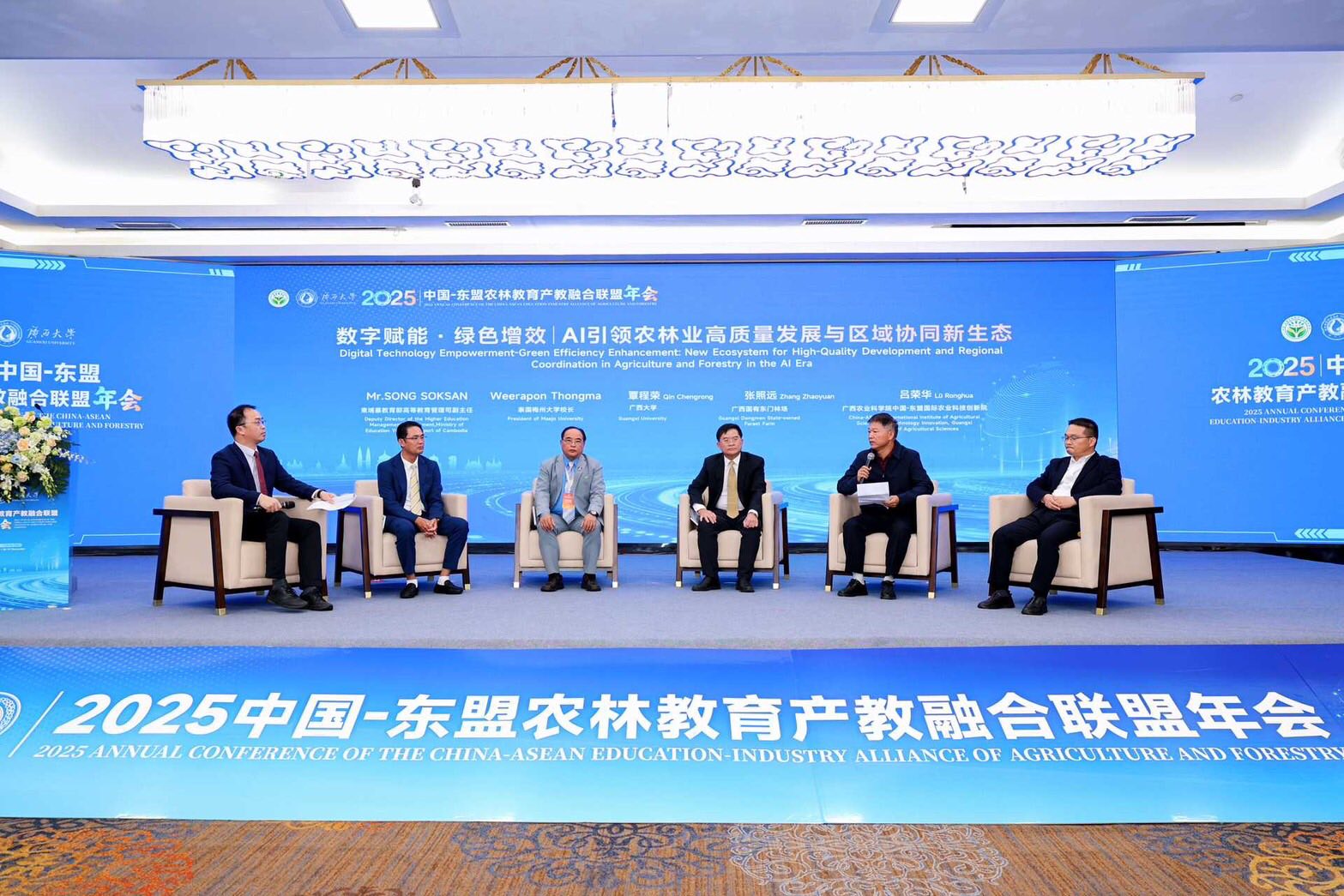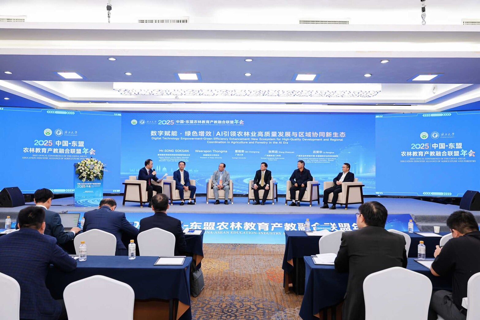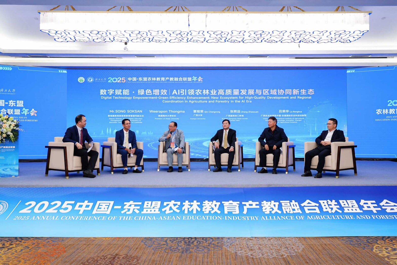 On this occasion, Associate Professor Dr. Weerapon Thongma, President of Maejo University, joined the conference as an invited distinguished guest and took part in a high-level roundtable forum on “Digital Empowerment and Green Efficiency: AI-Driven High-Quality Development of Agriculture and Forestry and Regional Collaboration.”