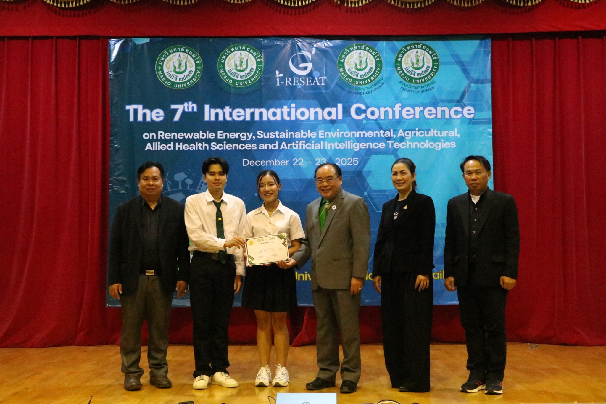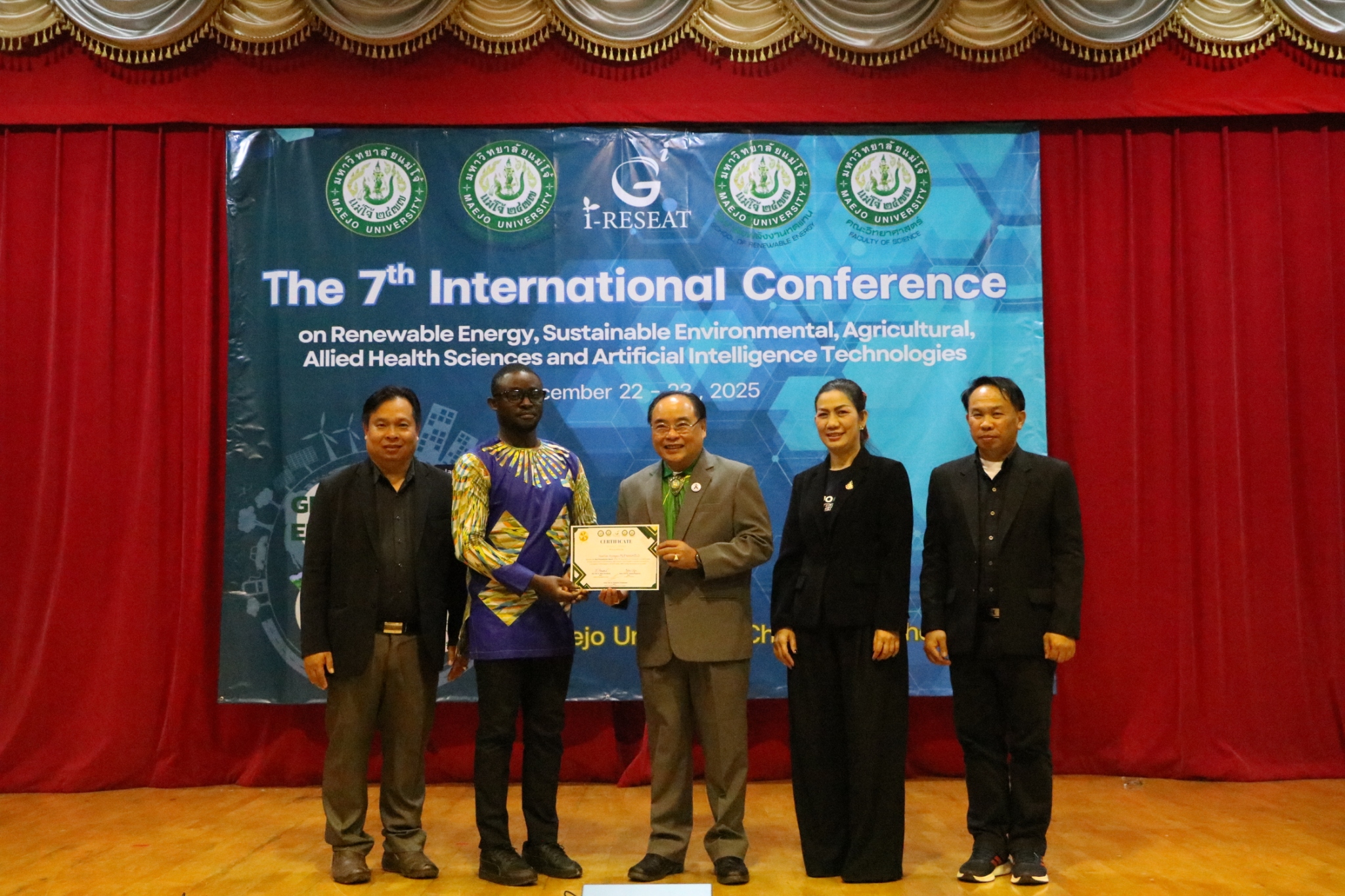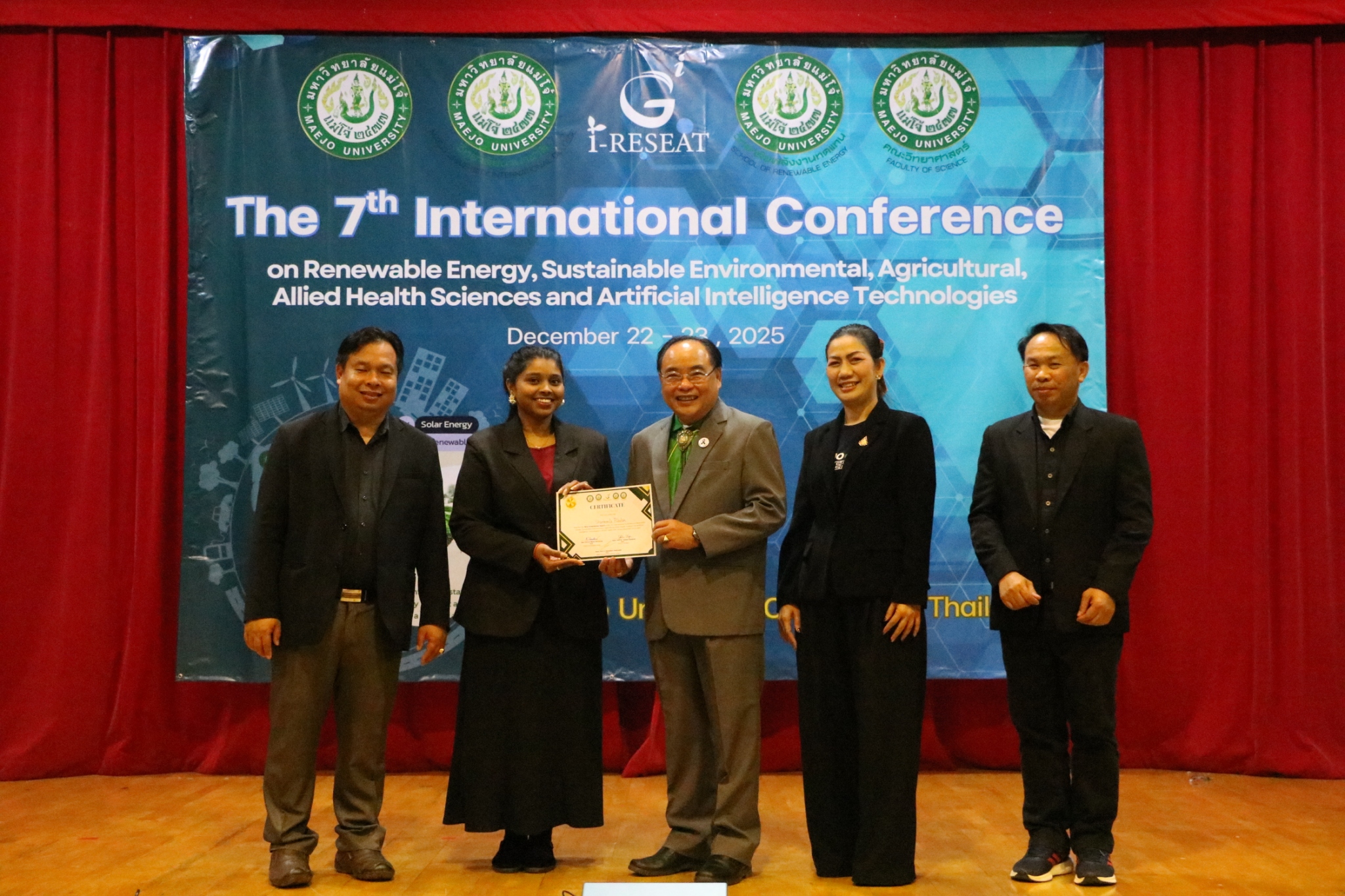 Maejo University had the honor of co-hosting the 7th i-RESEAT 2025 International Conference in collaboration with Vellore Institute of Technology – Chennai, Dhanalakshmi Srinivasan University, K L University, Feng Chia University, National Ilan University, Sri Vidya Mandir College, and the Asia-Pacific Economic Cooperation (APEC).
