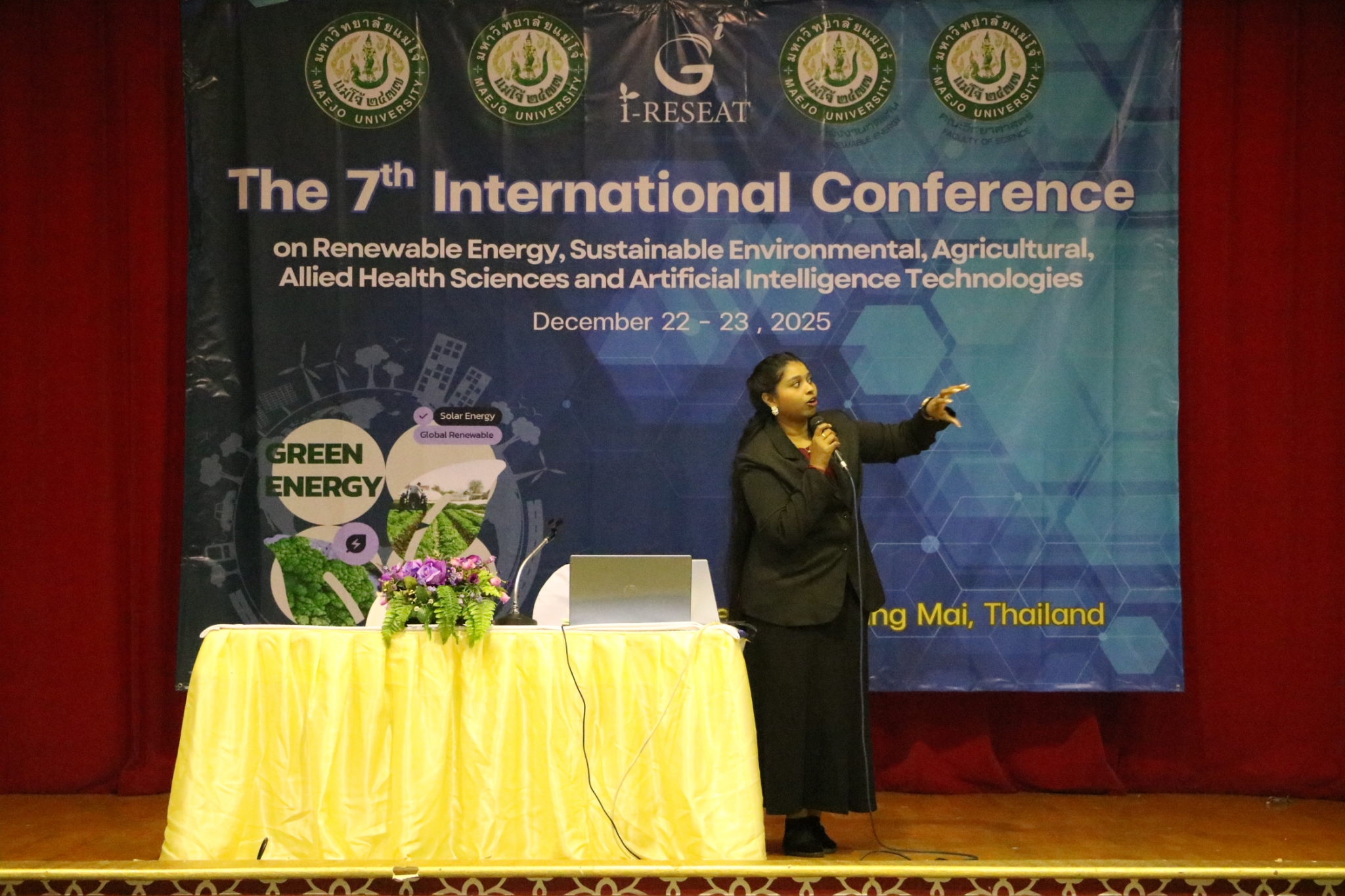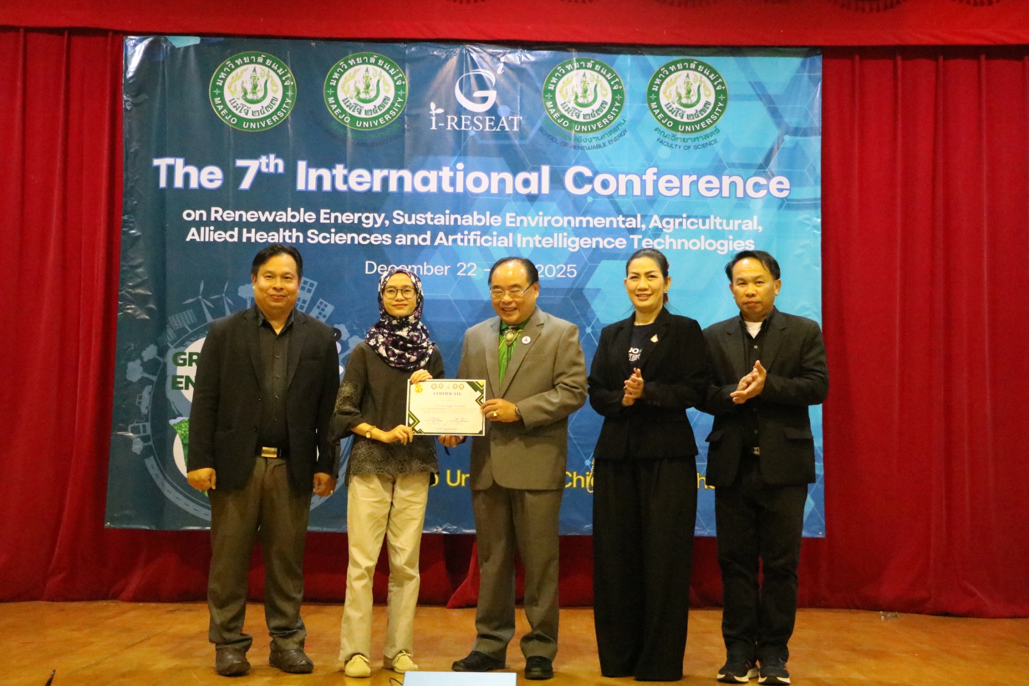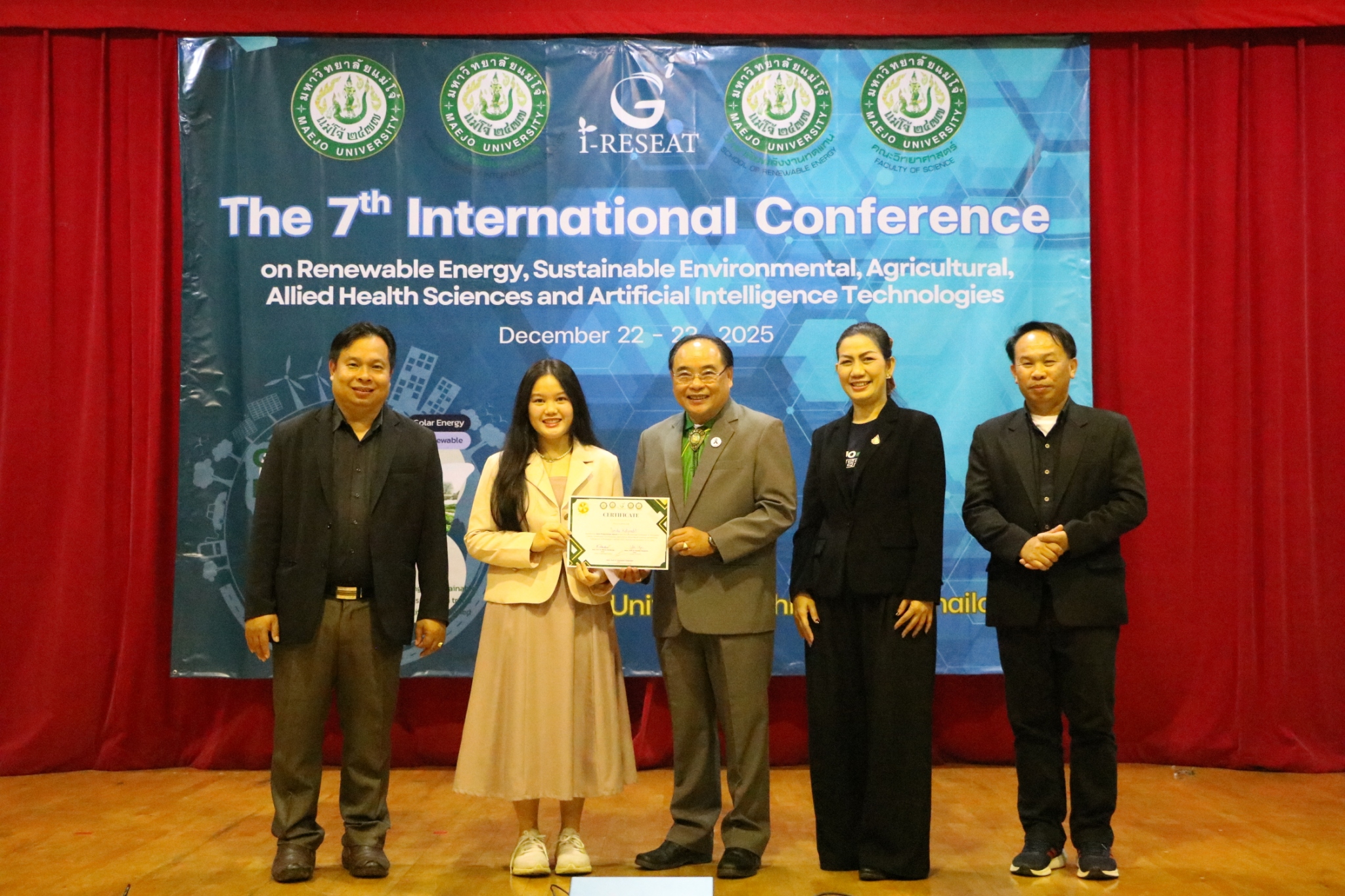 Maejo University had the honor of co-hosting the 7th i-RESEAT 2025 International Conference in collaboration with Vellore Institute of Technology – Chennai, Dhanalakshmi Srinivasan University, K L University, Feng Chia University, National Ilan University, Sri Vidya Mandir College, and the Asia-Pacific Economic Cooperation (APEC).