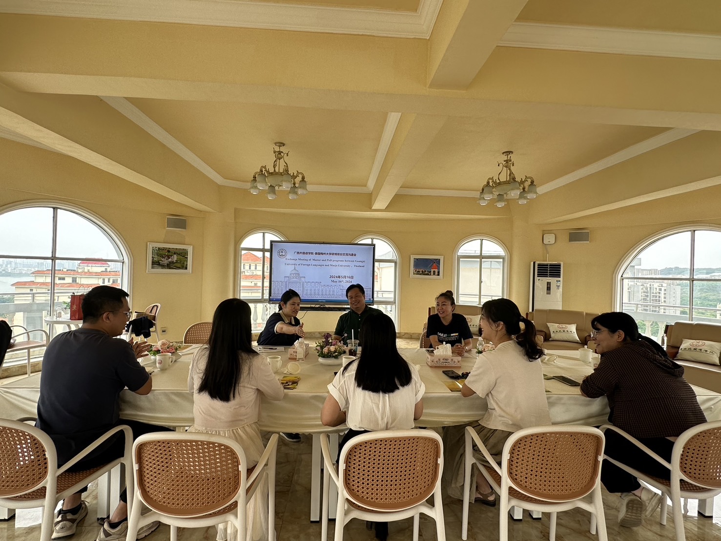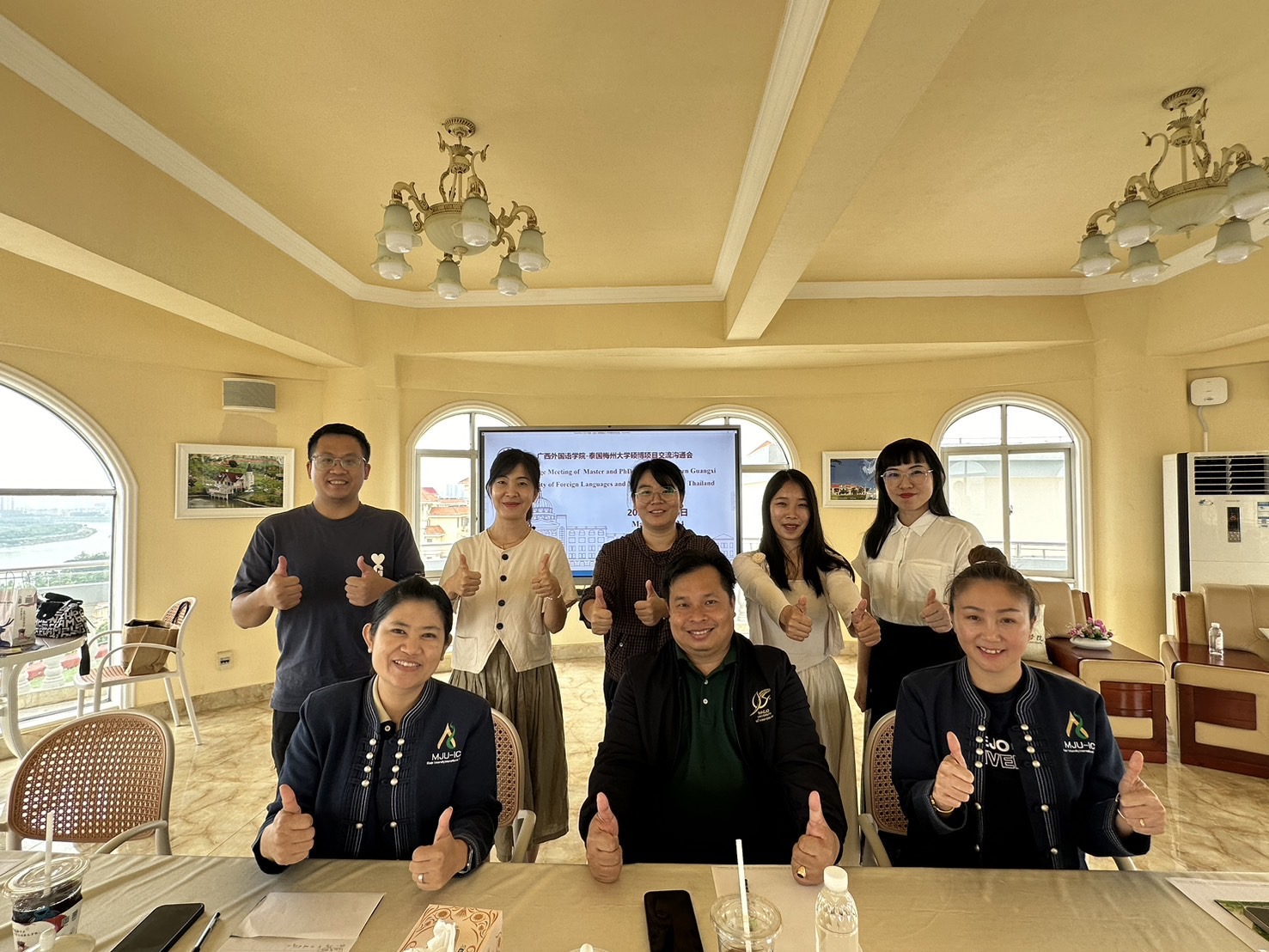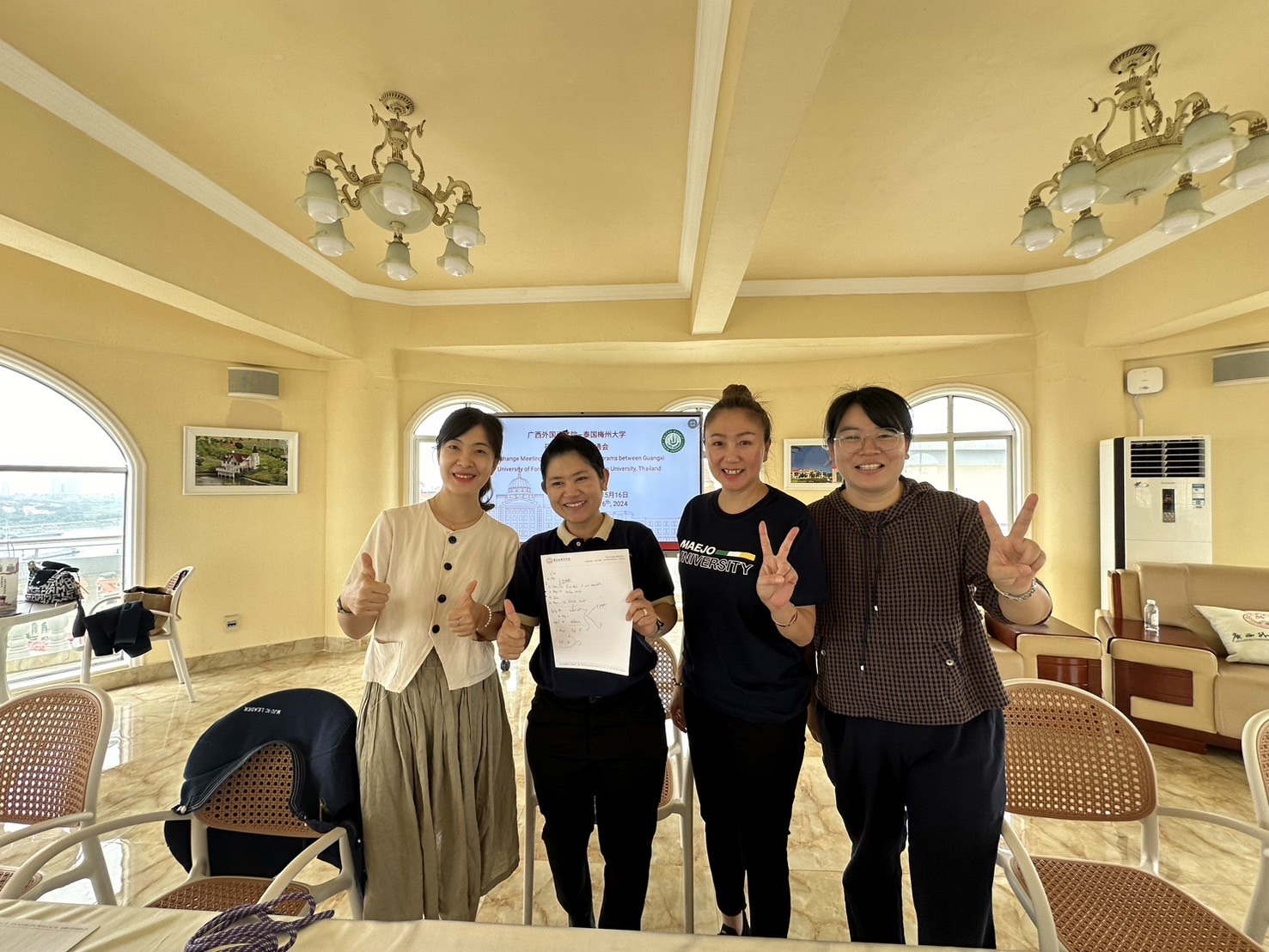 Associate Professor Dr.Rapeephun Dangtungee, Dean of the International College, Maejo University, Dr. Winitra Leelapattana (Associate Dean of International College), Dr. Suthira Sitthikun (Assistant Dean of Maejo University International College), Follow up and meeting with master and PhD students and curriculum promoting at Guangxi University of Foreign Languages, China