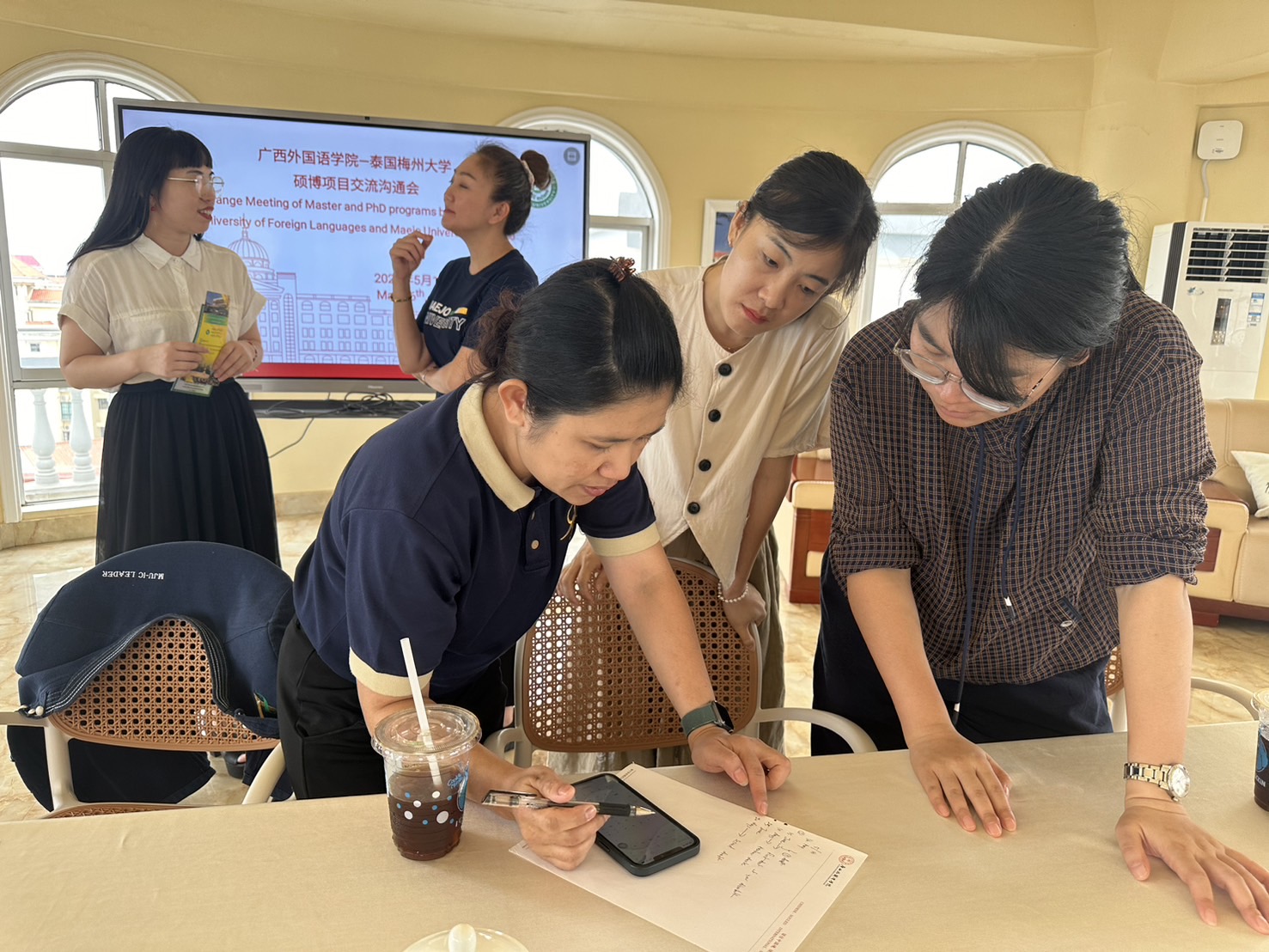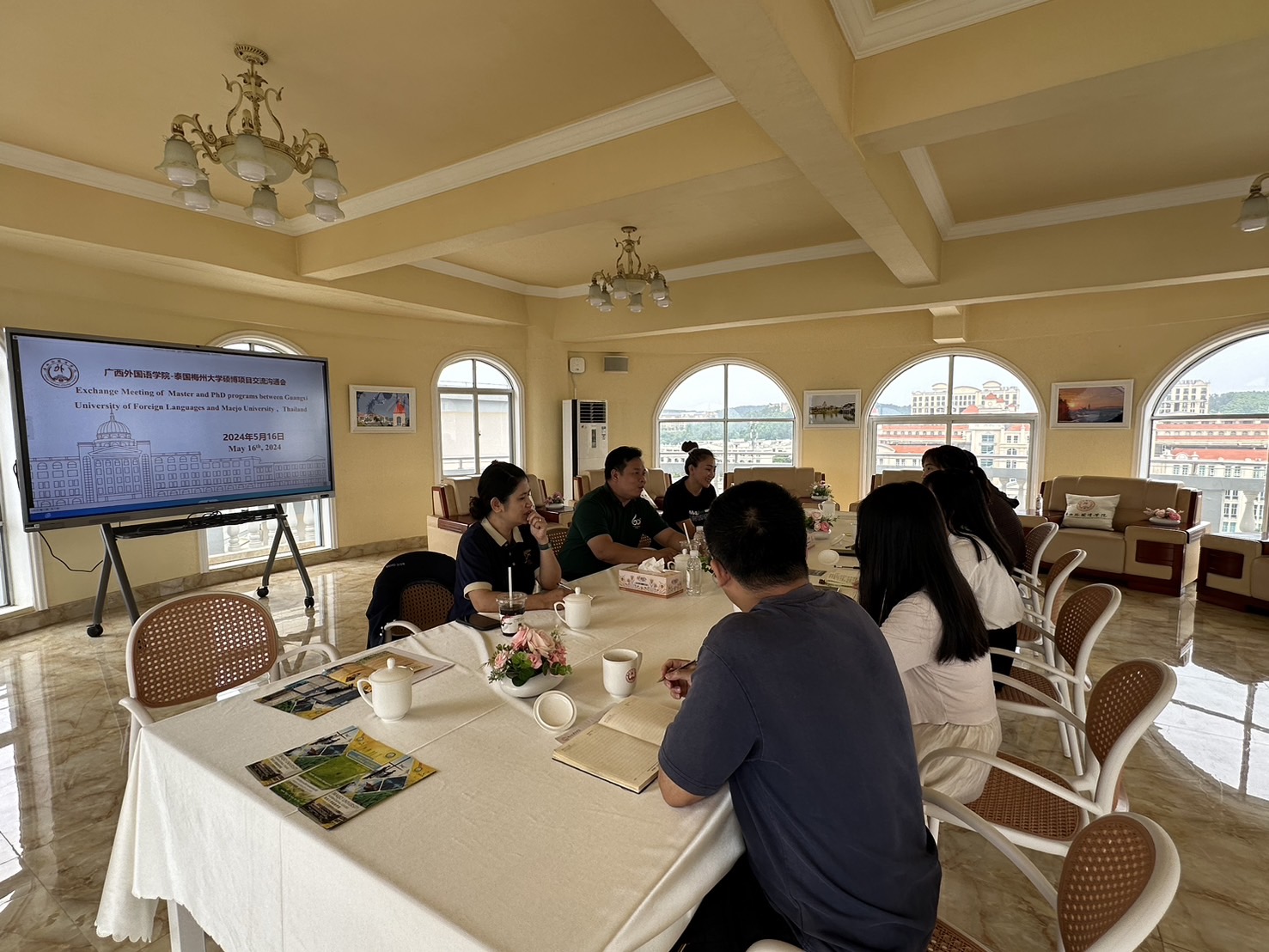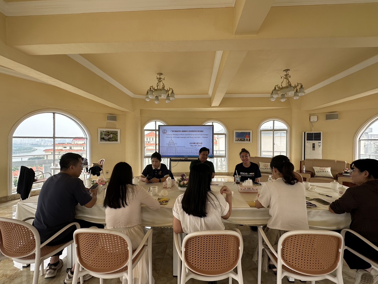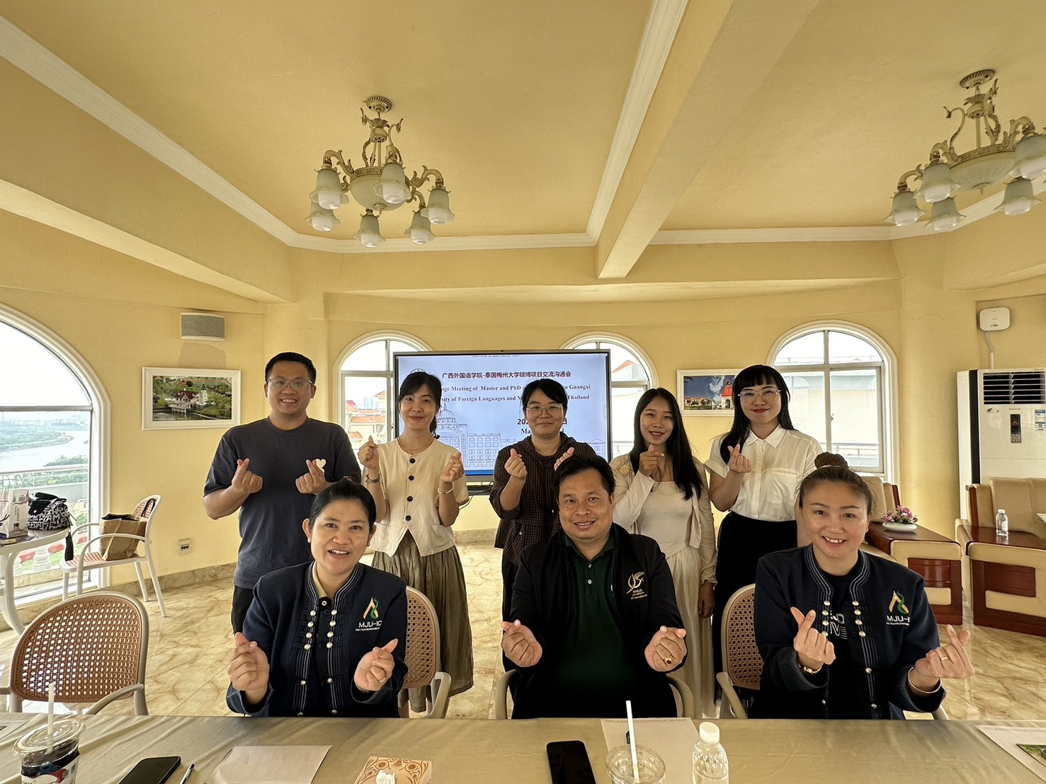 Associate Professor Dr.Rapeephun Dangtungee, Dean of the International College, Maejo University, Dr. Winitra Leelapattana (Associate Dean of International College), Dr. Suthira Sitthikun (Assistant Dean of Maejo University International College), Follow up and meeting with master and PhD students and curriculum promoting at Guangxi University of Foreign Languages, China
